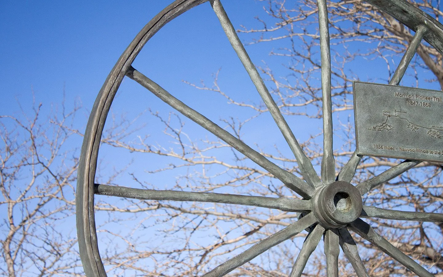 Scott dropped me off and went back for gas, leaving me totally alone in a snow-covered parking lot. The Museum was closed for the holiday so I tromped around the lot for a while, not quite sure what to so. It was unspeakably quiet, there—maybe the snow was sucking up all the sound. But there was a huge bronze statue of an Indian brave battling a buffalo and a wagon wheel atop some kind of Mormon monument—signs of two cultures I’ve never heard called out in those honky-tonks back home. I took a few pictures with my phone, not quite sure what to do.