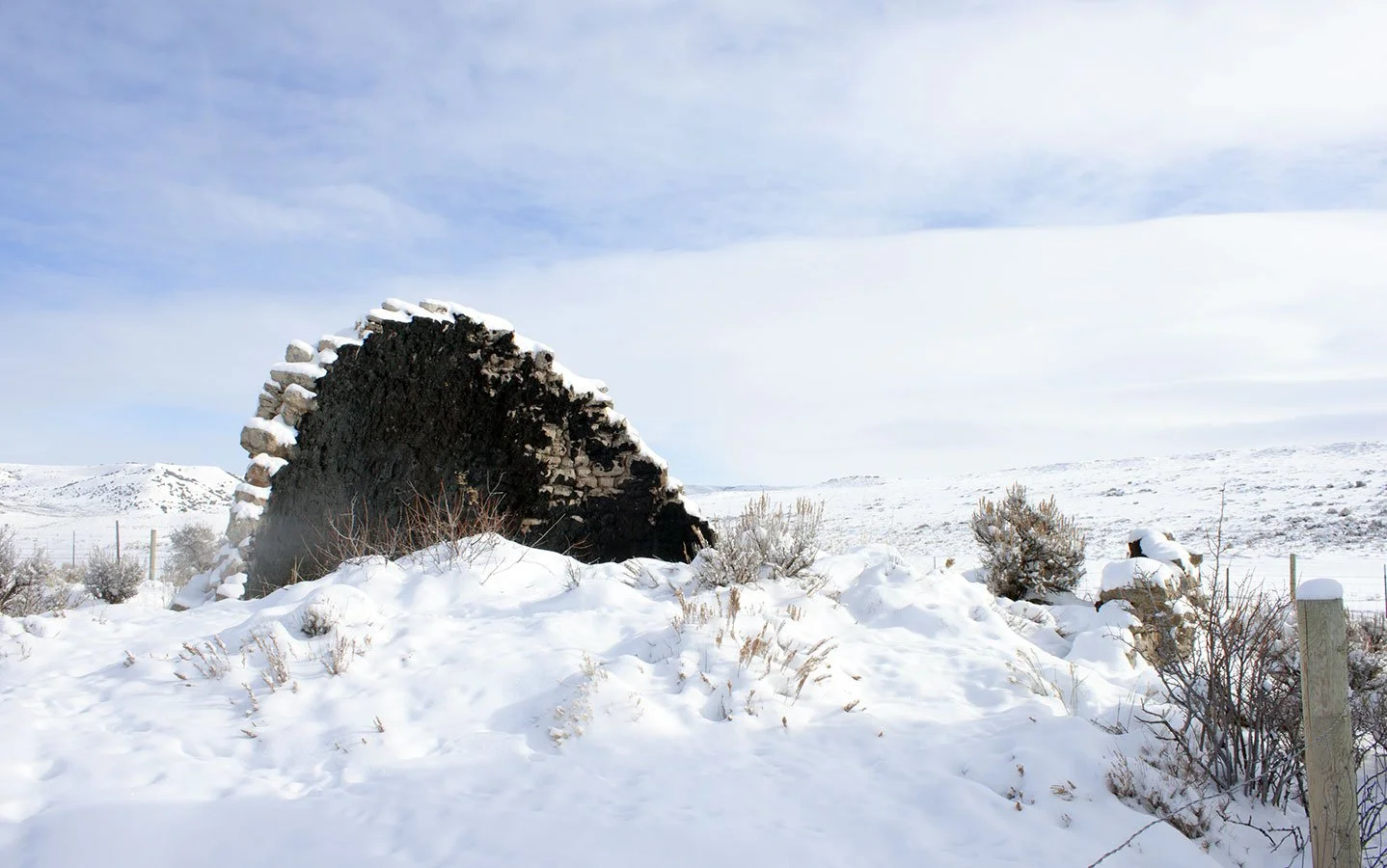 Scott and I sunk knee-deep into the snow as we wandered among those ancient ovens. The kilns were just like Jane described them in her journal. House-sized domes blackened on the inside from careers spent cooking up fuel for the railroads. And three of them stood tall and perfect, like you could gather up some wood and fire them up, today. But a fourth stood shattered. Like a bit of eggshell jammed up through the earth, curved and broken and remembering a violence that took place long ago. I stood in the shadow of that shattered kiln and looked across the way at what was left of the old town. Jane and her Green Men blew it all up in the summer of 1867. And what that explosion must’ve been to decimate however many other kilns stood back then, and that town so far off.