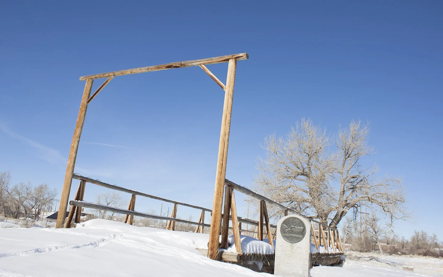 I tromped through the teepee poles, letting my hands drift over the smooth wood and imagining I was Jane among the Lakota, painting my face with the braves. I walked through the open fort, dodging tiny cyclones of dusty snow and looking for the scars alien weapons should’ve left on the old wood. Reverently, I approached the end of the bridge, hauling myself up through the snow and onto its buried planks.
